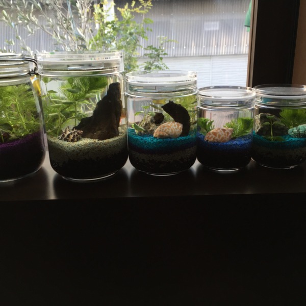ボトリウムなる物も製作してみました(^^) 中にはアカヒレ、石巻貝を入れてあります^o^