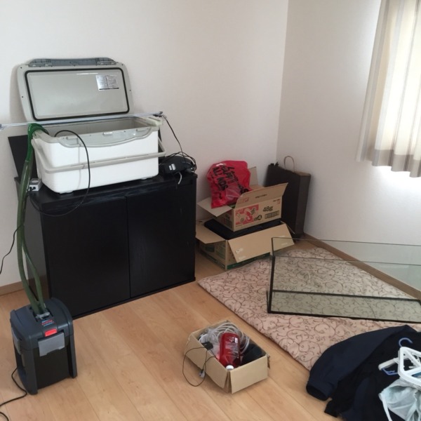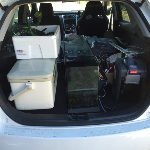 しばらくはこのクーラーボックスで生体達には過ごしてもらいます(爆 生活感溢れる...