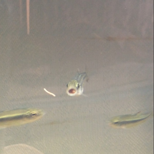 この激かわの表情!!口に赤虫がはいってるのに手前の赤虫を食べようとするカワム...