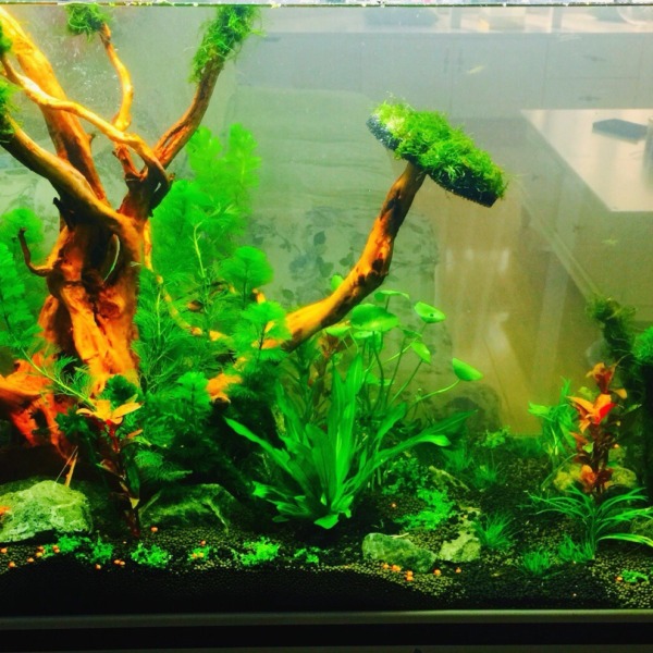 今日、水槽を リセットしました! 良い点もしくは アドバイスがあれば お願いしま...