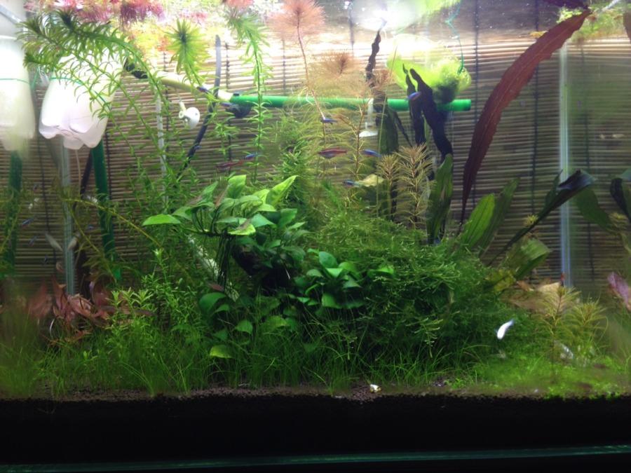 コケ退治はミナミ100匹ヤマト15匹投入でやっつけてもらいました。そんなに水槽に詳しくは無いのですが浮草、アナカリスで余分な栄養を吸収で コケにまわらないようにと…間違えるかも知れませんが