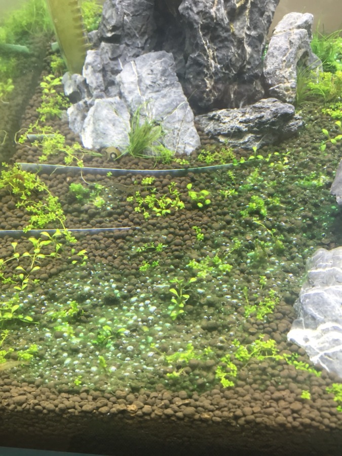 ソイルにこびりつく様に謎のコケ?が着いてきました。 藍藻でしょうか?