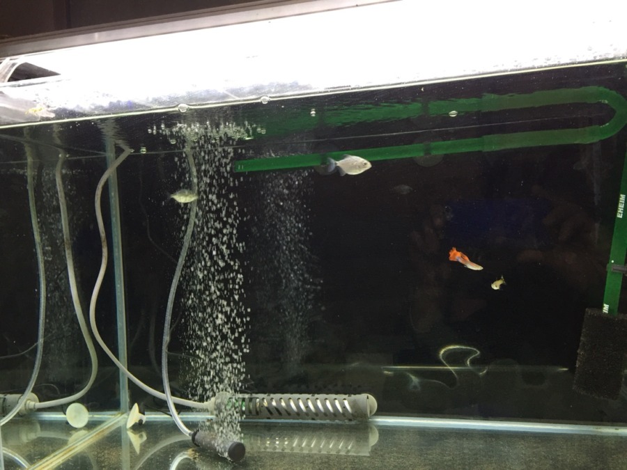 グッピー入れたばかりの時は必死に追いかけ回してたのに…あの時の凶暴さはどこに…