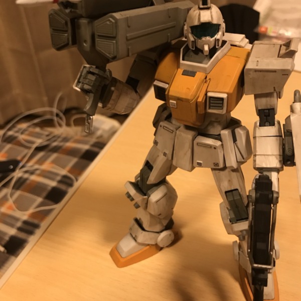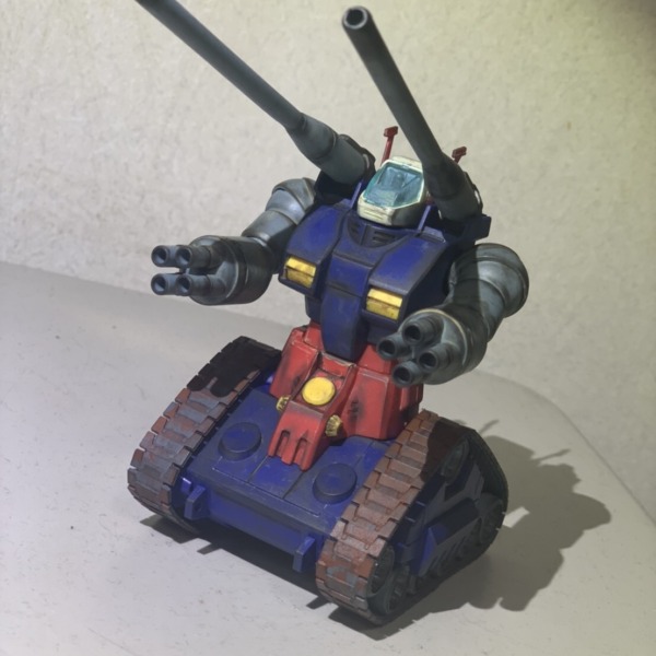 HGガンタンク。ウェザリングに挑戦してみました。 キャノンの焦げみ、全体的のウォ