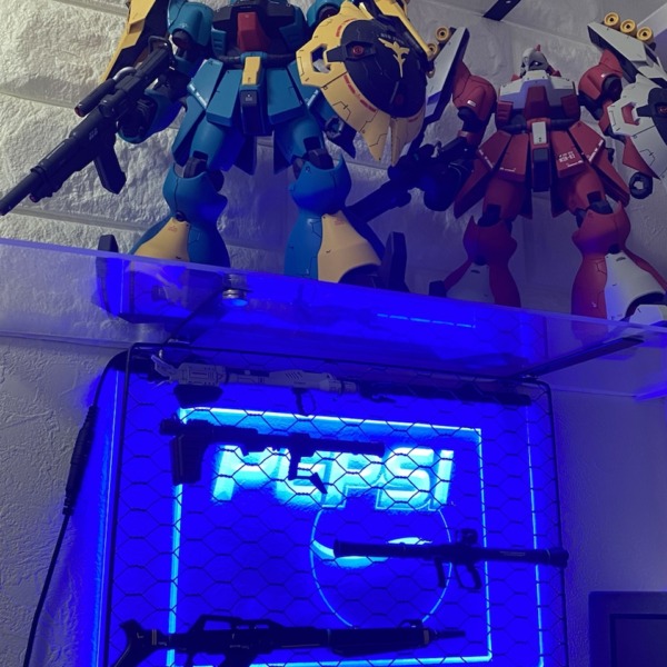 ネットでみた、余った武器の効果的な飾り方。裏のネオンで見えにくいが、これはかなり