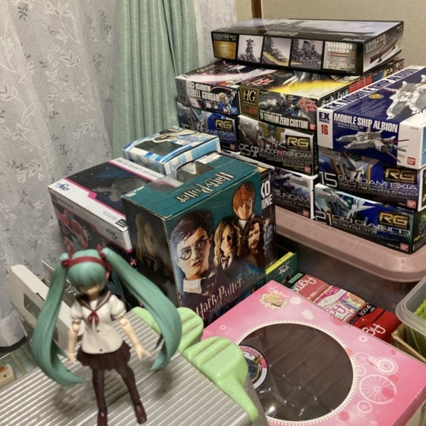 部屋を整理中です。 ご覧の通り積みプラ&積みフィギュアの山です