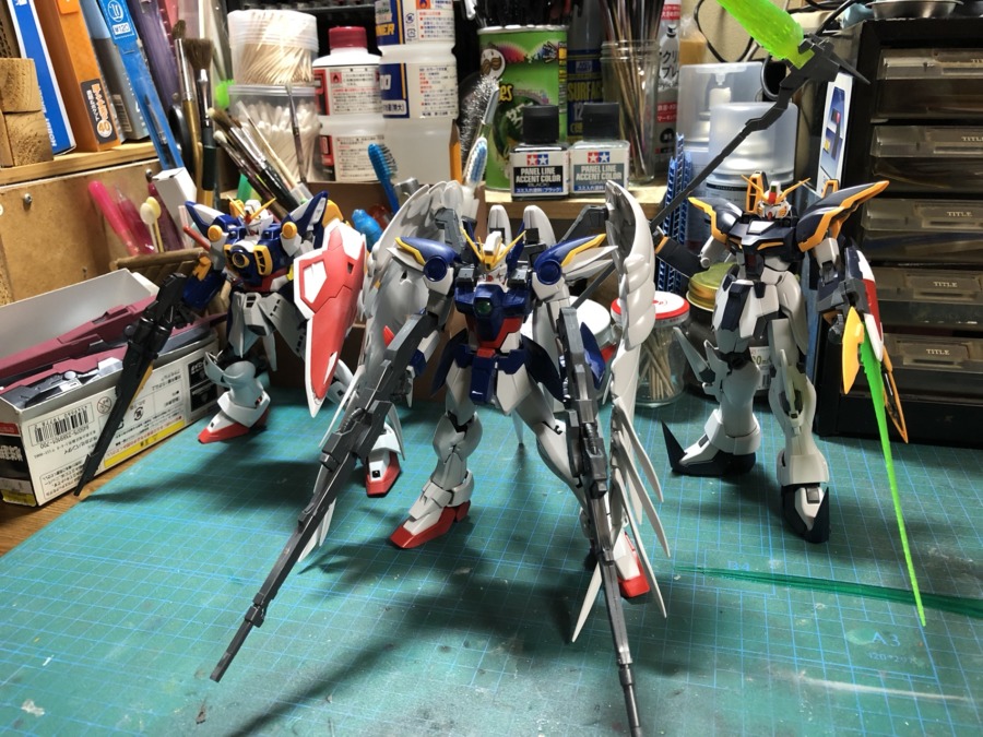 友人からの製作依頼でMGウイングガンダム、デスサイズ、ゼロカスをオリジナルカラーで製作中😊