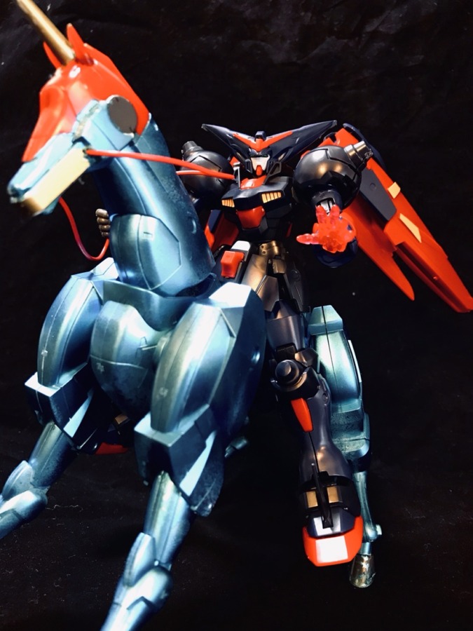 保育園も自粛になって、暇になった5歳の息子が「お馬のガンダム」が作りたいと言い、買ってあげました。ガンダムマーカーエアブラシで馬をメタルブルーにしました。塗装は手伝いましたが、SDガンダムから初めてHGもほぼ1人で組むことができるようになりました。