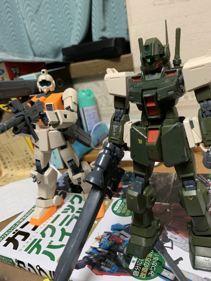 改造中のジムスナイパーIIと、 装備取られた陸ジムです。 また、ジムスナイパーI