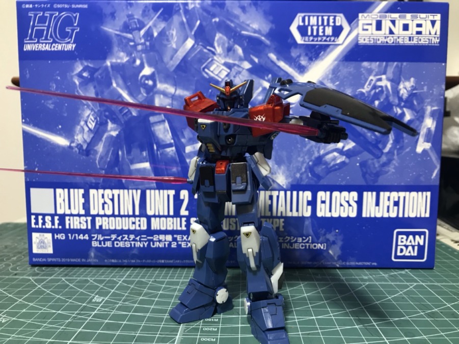 HGUCブルーディスティニー2号機メタリックグロスVer,になります。