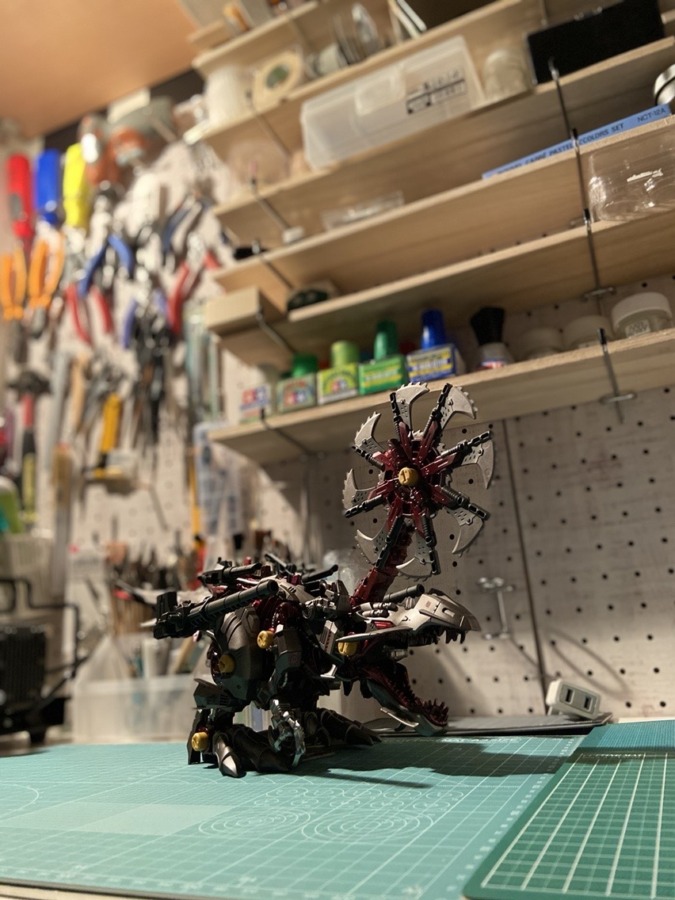 子供の頃遊んだゾイドがアニメゾイドワイルドで復活。子供たちと遊ぶうちにパパもジェノスピノが欲しくなりついでに全塗装。ボディはキャンディレッドを濃い目に。アーマーは渋く艶消しで。ゾイドも塗装すると迫力があります。